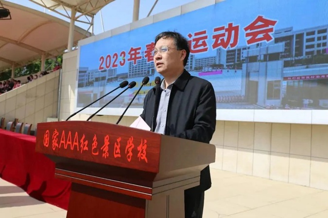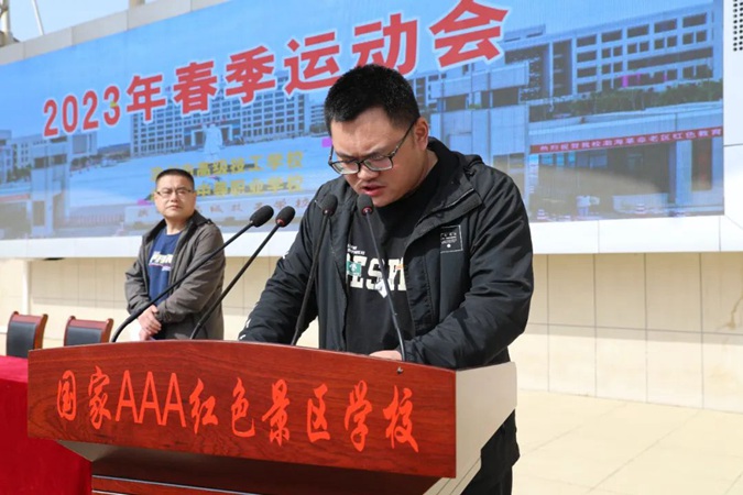 党委副书记、副校长孟维赞宣布滨州市高级技工学校2023年春季运动会开幕。