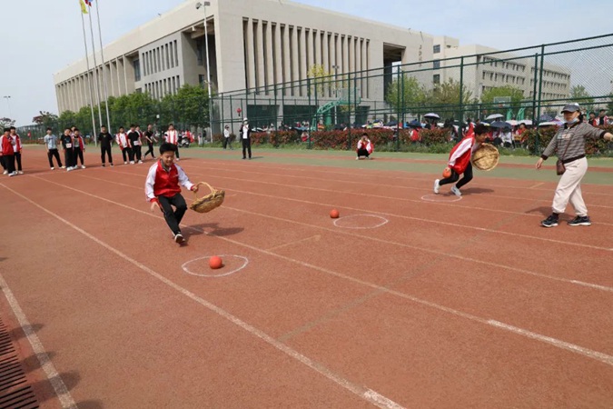 本次运动会在进行100米赛跑、200米赛跑、4×100米接力、立定跳远、前抛实心球、一分钟跳绳踢毽、集体大跳绳、定点投篮等常规运动项目的同时,还设置了艰难长征、红军过草地、运送弹药、南泥湾抢收等红色特色项目,让同学们在感受运动魅力的同时,弘扬革命精神、厚植爱国情怀。