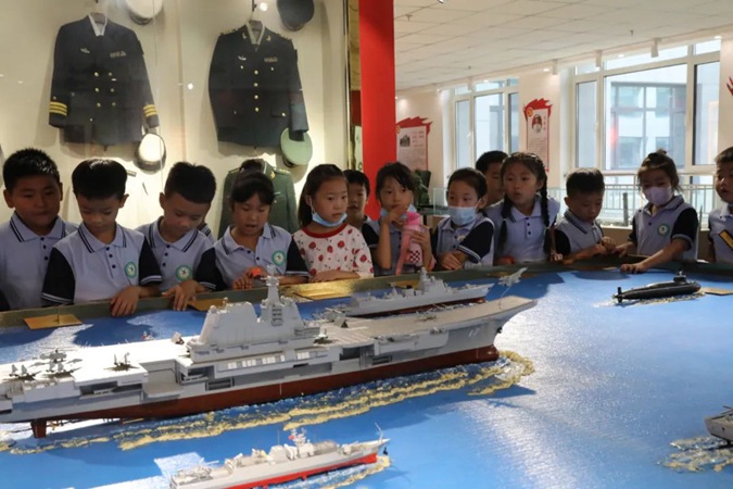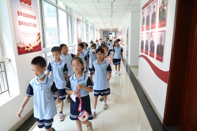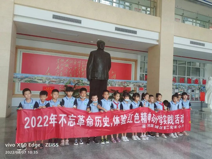 同日,滨城区第二实验小学一年级1班的学生及家长到滨州市高级技工学校参观研学,接受红色教育。