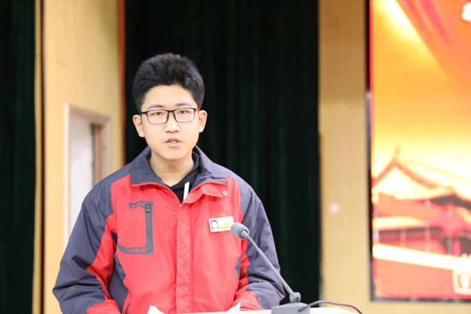 毕业班学生代表2018级春考3何叔衡班石鹏程同学发言,以“古之立大事者,不惟有超世之才,亦必有坚忍不拔之志”激励大家、鼓舞大家,以“2021,我们必定成功,2021,我们必创辉煌”表达了2018级学生的共同心声。