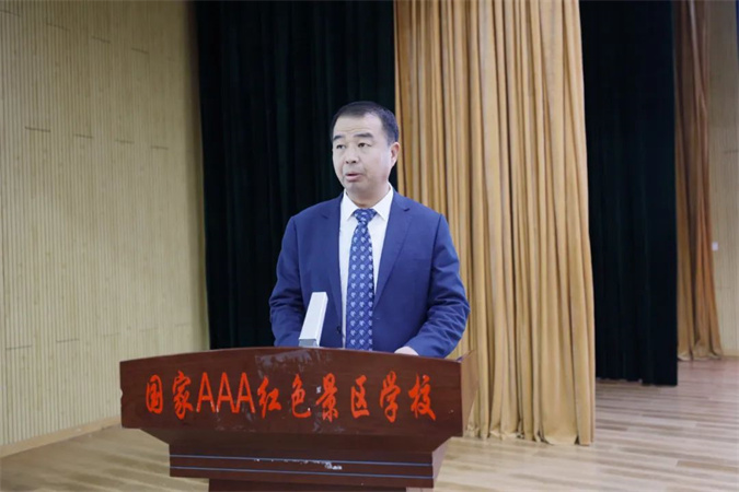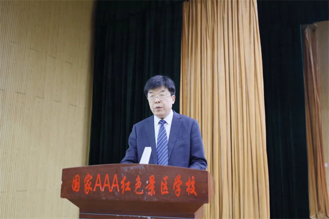 区政协副主席,区教体局党组书记、局长韩新民致辞。他指出,滨州市高级技工学校与首都师范大学附属滨州中学携手合作,是双方基于优势资源共享、优化教学模式、促进两校教育高质量发展的深度共识,更是对发挥名校名师示范效应、办人民满意教育的积极探索。双方通过整合优势教育资源,在教学管理、教师授课、备考指导、学生研学等方面展开全方位合作,让家长和学生多了一份选择,让更多孩子享受到首师的优质教育资源,实现多赢发展。