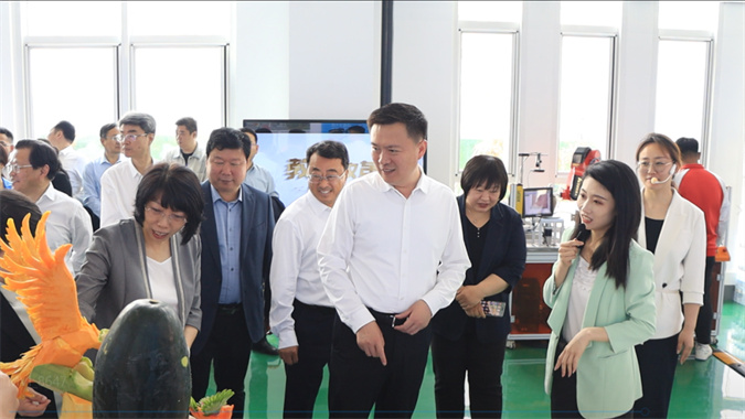 我校展区分3D打印专区、工业机器人码垛区、校企合作成果区、非遗创新板块、烹饪专业果蔬雕刻展台“五大模块”,全方位展示我校特色专业建设与教学成果。其中3D打印无人机成为全场焦点!创新的设计理念、精湛的制造工艺,充分展现了我校在专业建设与技术创新方面的强劲实力。屈跃宽对此给予高度评价,点赞我校在产教融合、科技创新上取得的突出成果。滨城区委常委、副区长曲婕,区教体局党组书记、局长高风阁参加活动,学校党委副书记、校长张洪青,党委委员、副校长,滨城区委社会工作部部长张波全程陪同。