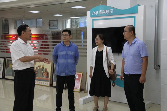 7月8日上午,滨州医学院离退休工作处党委书记王红梅等12人到滨州市高级技工学校参观,重温入党誓词,开展红色教育。学校党委书记、校长王树林,党委委员、副校长刘岳陪同。