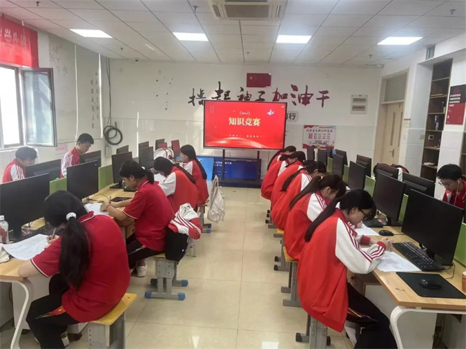 此次活动由学校团委、红色思政教学中心共同举办,本学期开学初便拉开帷幕。9月3日,学校为每名学生发放了《红色文化系列知识手册》和《学生手册》两本小册子。《红色文化系列知识手册》内容涵盖国史、党史、红色英雄人物及省情、市情等内容,《学生手册》包含相关法律法规及在校生应遵守的校规校纪、优秀学生表彰办法等。学生利用课余时间学习,各教学中心部组织初赛,选拔优秀学生参加学校决赛。