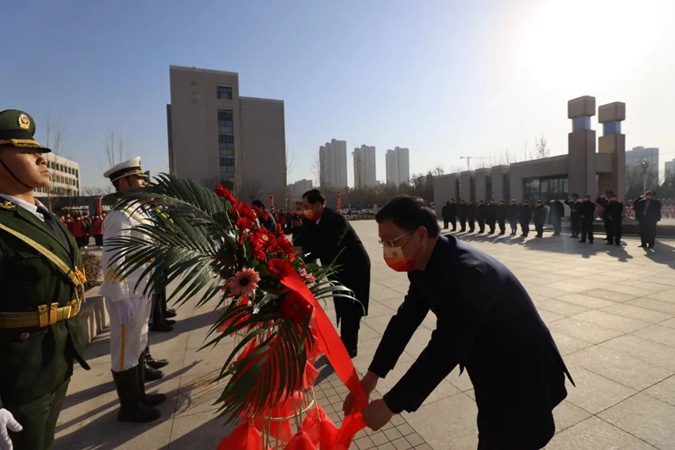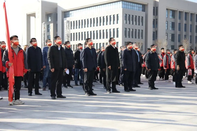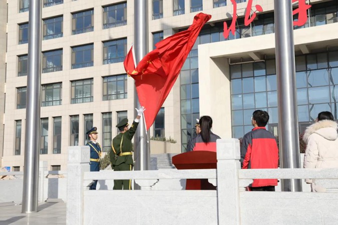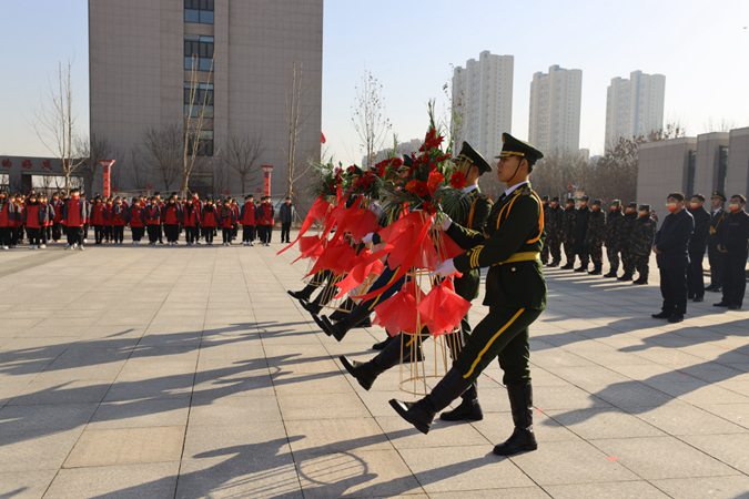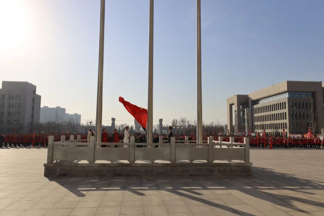 12月20日,滨州市高级技工学校4500名师生齐聚东方红广场,举行升国旗献花篮仪式,纪念毛主席诞辰128周年。激昂的《义勇军进行曲》在东方红广场上空响起,鲜艳的五星红旗冉冉升起,风雨如晦的年代仿佛又呈现面前,“中国人民从此站起来了”犹在耳畔。