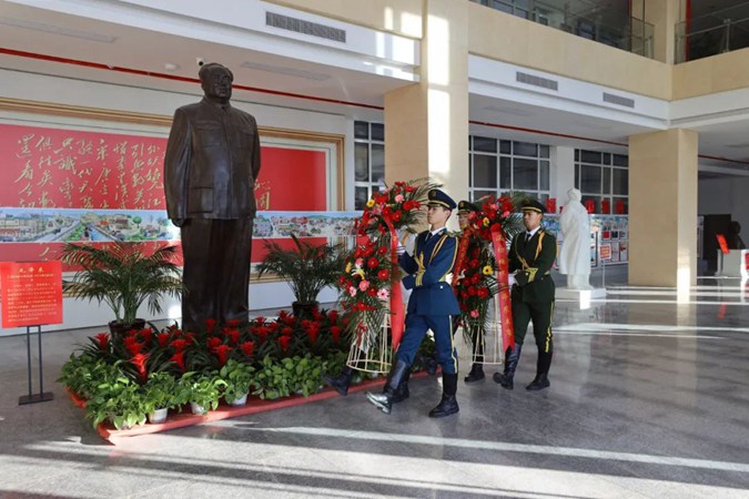 随后,向毛主席雕像敬献花篮,学校领导仔细整理花篮上的红色缎带,思念绵绵,鲜花簇簇,时光可以冲淡记忆,却冲不走我们对毛主席的敬爱之情。