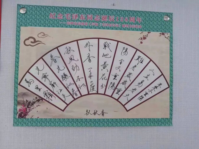 学校语文教研组组织举行了《毛泽东诗词》硬笔书法比赛,全校师生共同参与,最终评选出60余幅优秀作品,在北平楼二楼展厅展出。一幅幅作品匠心独运、各具特色,有的婉约流畅、端庄秀丽,有的刚健遒劲、孔武有力,既展现了学校师生的风采,又体现了对伟大领袖的缅怀之情。