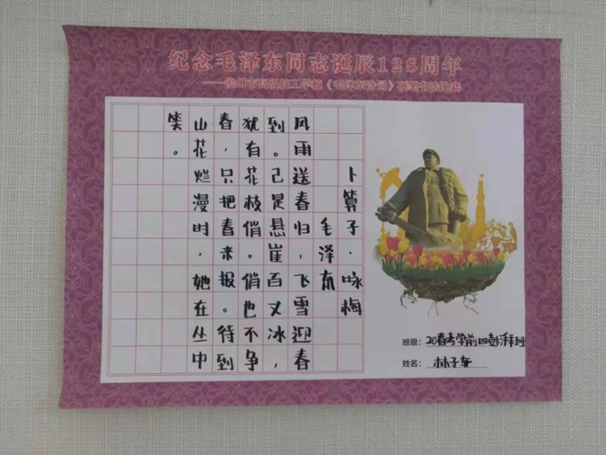 12月26日是伟大领袖毛泽东诞辰128周年,为深切缅怀伟人的丰功伟绩,激发全体师生的爱国主义情操,滨州市高级技工学校开展了系列纪念活动。