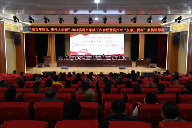 12月25日—26日,“颂百年恢宏,庆伟人华诞”2021年滨州市象棋工作会议暨滨州市“友第工贸杯”象棋锦标赛在滨州市高级技工学校举行,来自全市的160余名成年和少年象棋高手参加会议,并在两天的时间进行9轮600余盘激烈拼杀。比赛期间,举行了隆重的向毛主席雕像敬献花篮仪式,纪念伟大领袖毛泽东诞辰128周年。