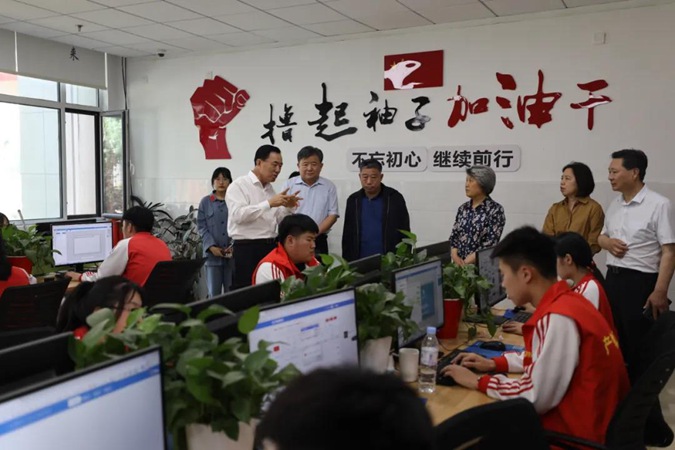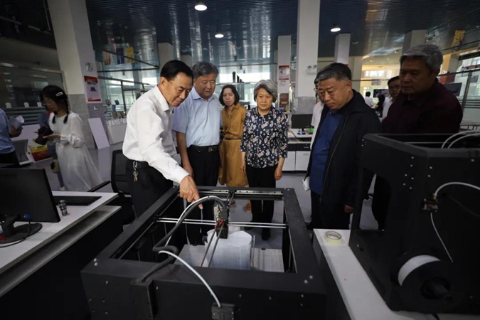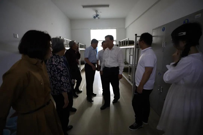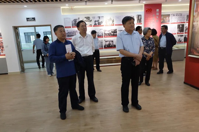 捐赠仪式结束后,参加活动领导参观了学校实训中心、东方红广场、产教工坊、学生公寓等,实地了解学校红色办学情况。随后,在北平楼参观了红色藏品展厅、党史展馆、国防教育展馆等,进行党史学习教育。