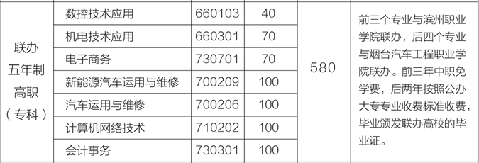 5、滨州市中等职业学校“初中后五年制高等职业教育”招生计划