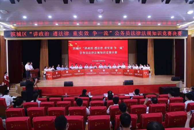 比赛前,区委常委、组织部部长李一鸣致辞,希望全区各级各部门要以此次比赛为契机,以比促学,以学促进,以赛促行,不断提升全区公务员法治意识和依法行政能力,引导公务员队伍以实际行动在富强滨州中心城区建设中当先锋、做表率,在“在知爱建”中展现靓丽风采。