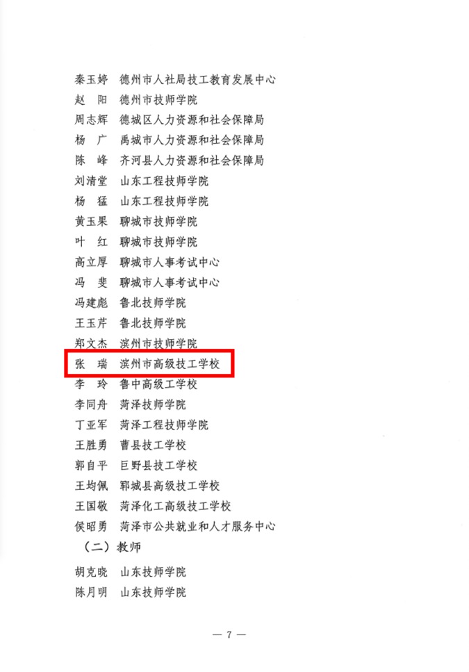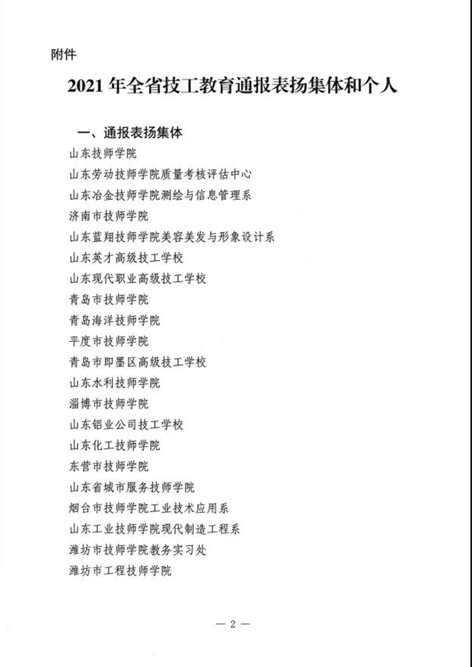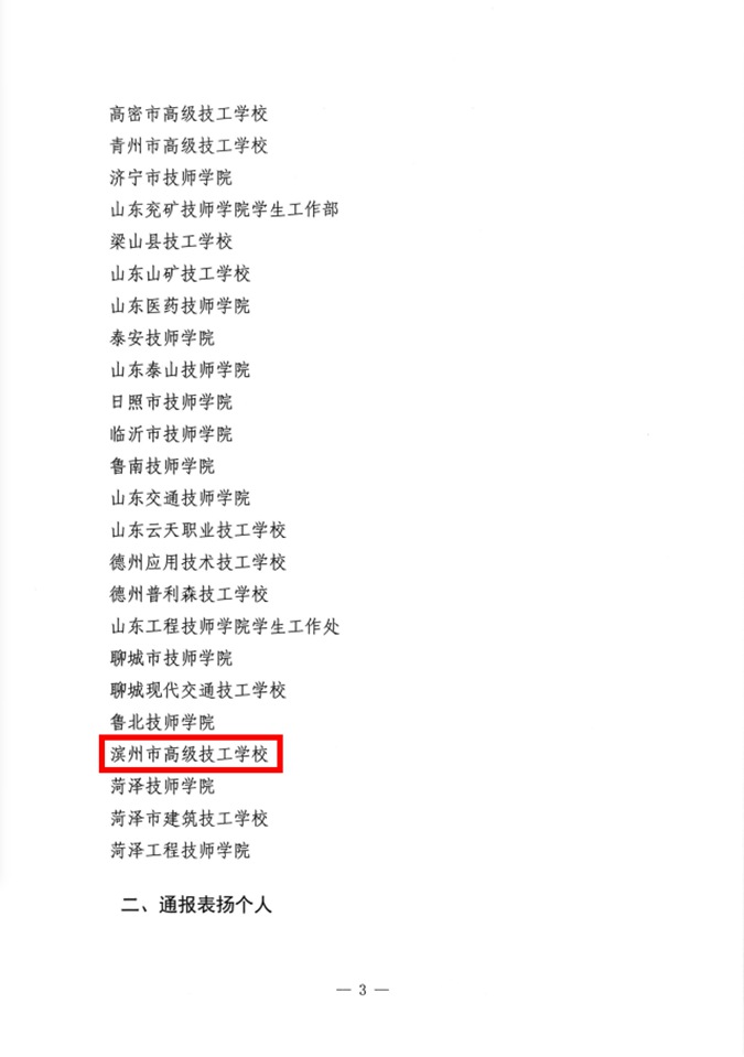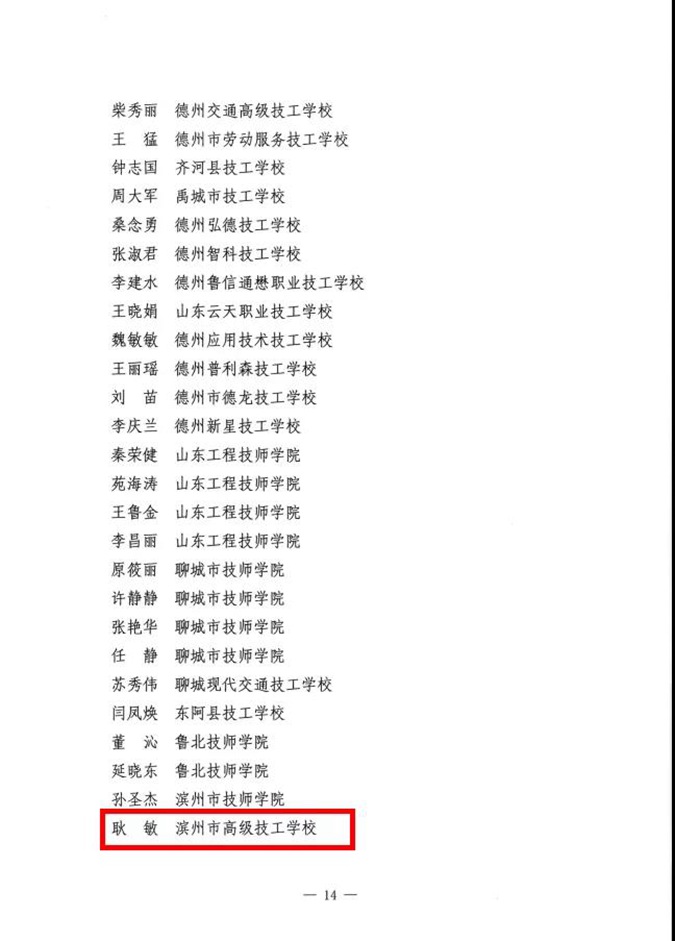 滨州市高级技工学校再次受到山东省人社厅通报表扬 多位教师获省市表彰