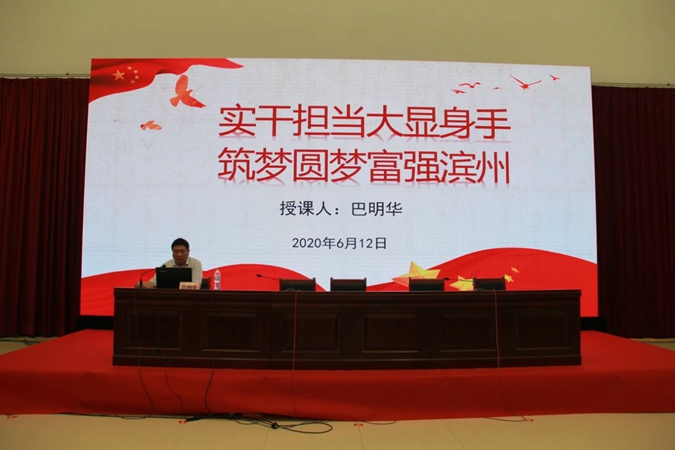 开班仪式结束后,巴明华以《实干担当大显身手 筑梦圆梦富强滨州》为题上了开训第一课。巴明华详细阐明了党和国家对退役军人的关心关爱举措及市委、市政府提出的“六问”谋篇,“八策”布局和“七强之路”、“七富之举”。殷切勉励退役军人“离军不离党,退役不褪色”,与滨州一起成长,与滨州一起富强。