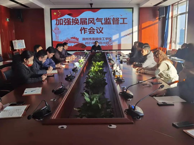 12月28日下午,滨州市高级技工学校召开加强换届风气监督工作会议。党委副书记、副校长孟维赞主持,党委委员、副校长刘仲凯,党委委员、纪委书记、市纪委监委监察专员宋志刚及全体中层正职以上干部参加会议。