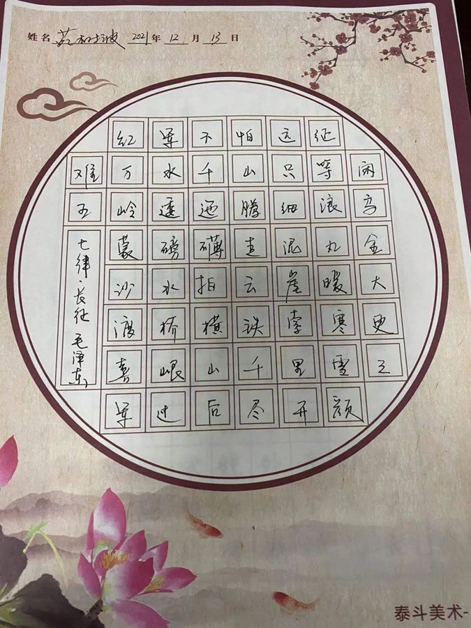 为了弘扬中华传统文化,近日,滨州市高级技工学校升学部团总支组织举行了毛泽东诗词师生硬笔书法大赛。所有参赛选手任选毛泽东诗词,在限定时间内完成整幅作品的书写。