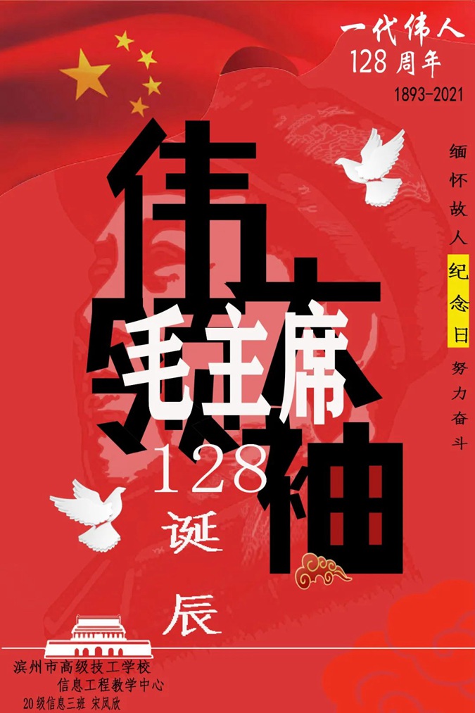 第二届Photoshop海报创意比赛以“纪念伟大领袖毛主席诞辰128周年”为主题,同学们积极准备素材,认真设计操作。比赛既提升了学生的计算机操作能力和水平,又激发了同学们的爱国热情。