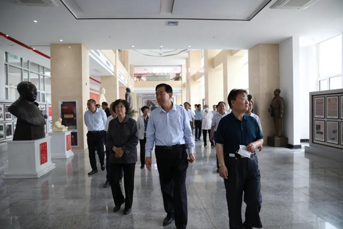 调研组一行首先参观了学校东方红广场、实训中心及韶山楼、井冈山楼的红色文化,参观了学校合作办学项目产教工坊,到北平楼参观了学校党史展馆、国防教育展馆、红十字展厅、老渤海展厅、校史馆等。