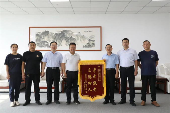 6月6日,滨州交运康养中心经理孙思文,副经理付冬梅来到滨州市高级技工学校,向学校赠送题有“孝老敬老 立德树人”的锦旗。党政办公室主任张砚春,组织人事科科长杜湖亭,吉宫实业总公司总经理雷岩锋代表学校接受锦旗。
