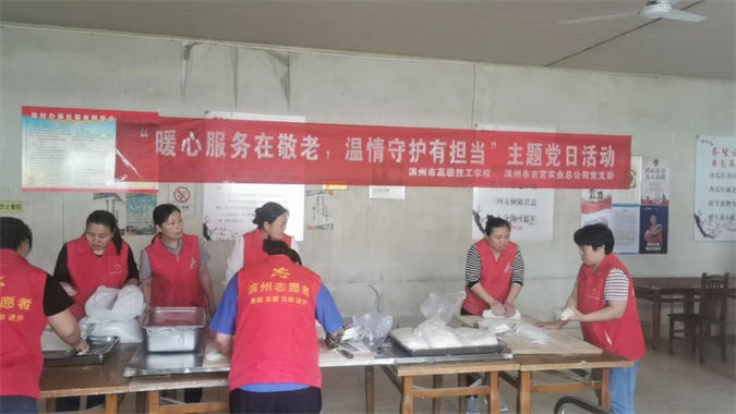 5月24日,滨州市高级技工学校吉宫实业总公司党支部走进梁才街道敬老院,开展“暖心服务在敬老 温情守护有担当”主题党日活动。大家和老人们唠家常、包水饺,了解老人们的身体、生活、饮食情况,并将带来的蛋糕送给老人们品尝,用实际行动为老人们送去关爱和温暖,深受老人的欢迎。