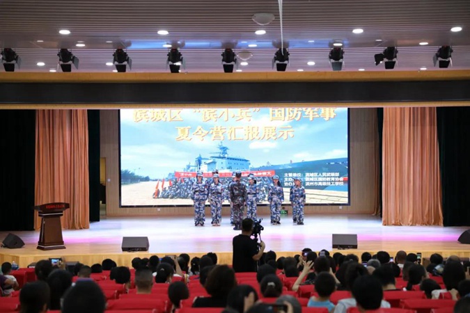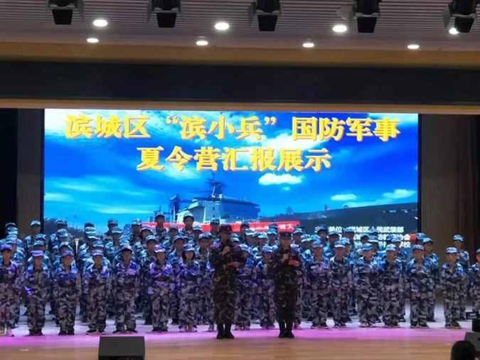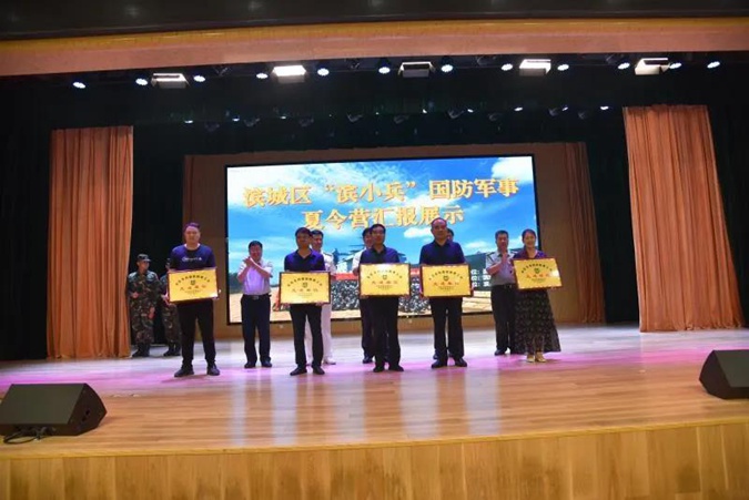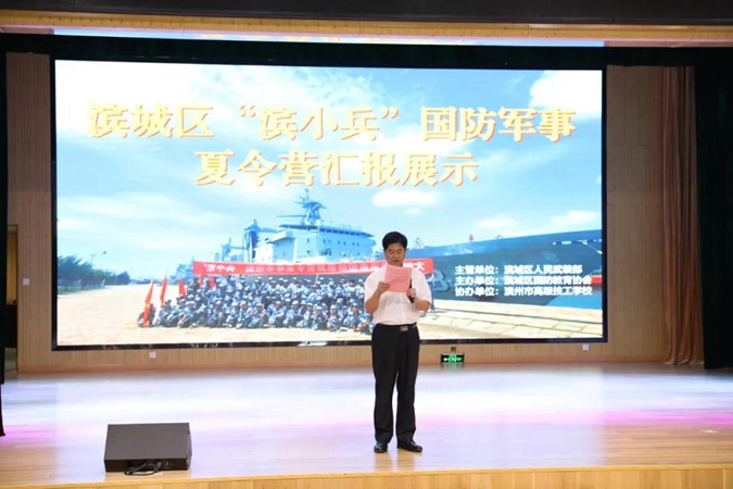 7月25日下午,由滨城区人武部主管、滨城区国防教育协会主办、滨州市高级技工学校协办的 “滨小兵”夏令营闭营仪式在滨州市高级技工学校一楼报告厅举行。区委副书记、区人大常委会主任李建汉,区委常委、宣传部部长马龙,区人武部政委叶莹磊,滨州市高级技工学校党委委员、副校长刘岳出席仪式。