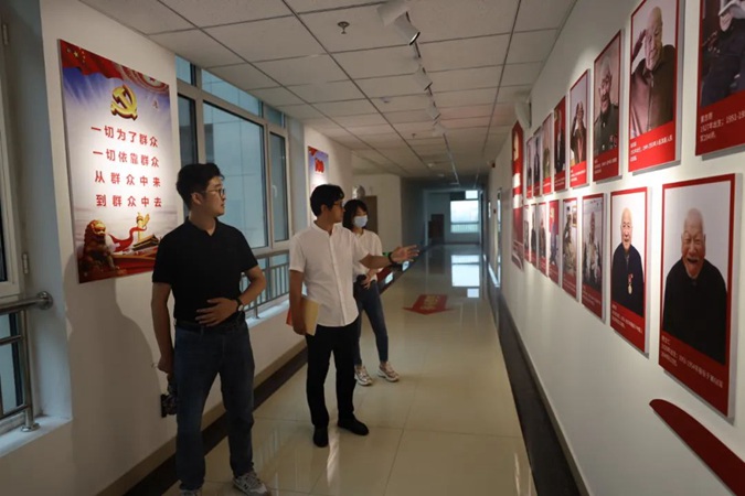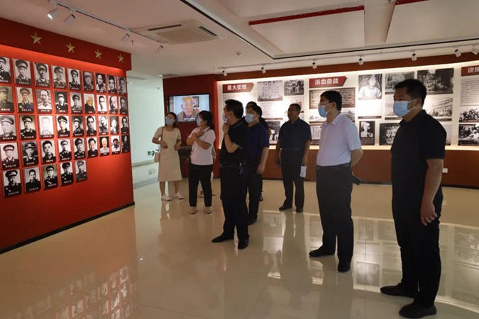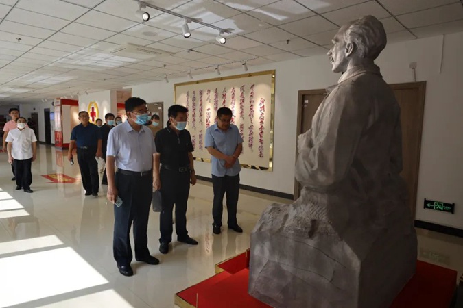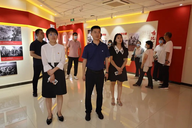 在红色思政教学中心副主任刘海航陪同下,张金发一行参观了北平楼伟人塑像厅、将军书画展厅、红色图书馆、百年党史馆等红色展厅。随后,与学校领导进行了座谈,就红色教育与传统文化相融合进行了深入探讨。