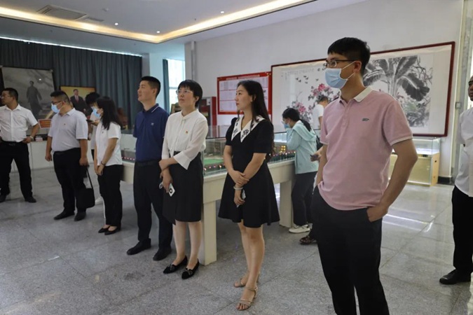 同日,滨州市高新区第二小学党支部全体党员在支部书记、校长姜志远带领下,到滨州市高级技工学校参观,开展“不忘初心 牢记使命”主题党日。红色思政教学中心副主任刘海航陪同。