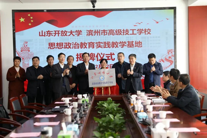 山东开放大学到滨州市高级技工学校调研并举行山东开放大学思想政治教育实践教学基地揭牌仪式