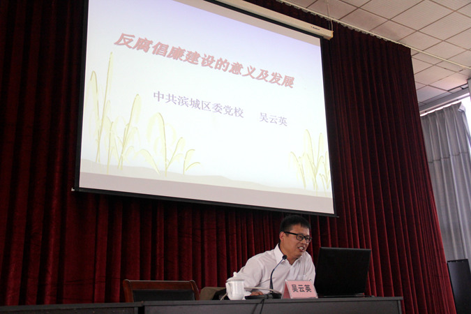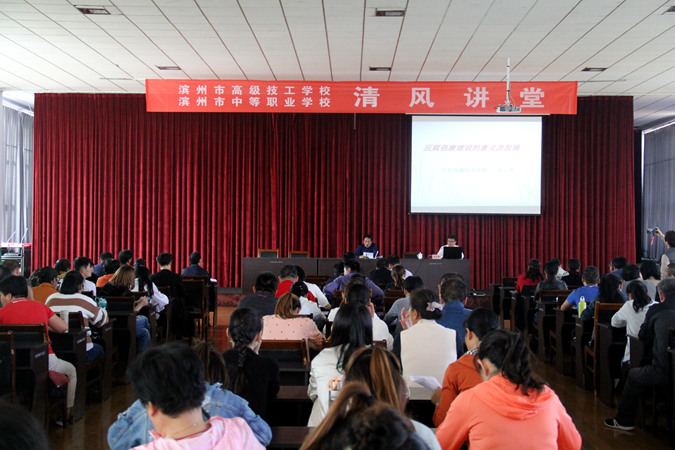 9月30日下午,滨州市高级技工学校全体党员干部、教职员工二百余人齐聚学校报告厅,聆听了滨城区委党校科研处主任吴云英做的廉政报告,报告的题目是《反腐倡廉建设的意义及发展》。