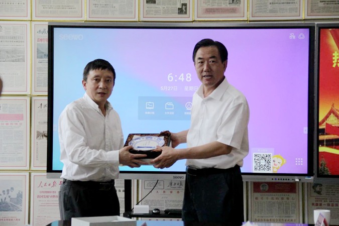 参观结束后,在韶山楼二楼会议室举行座谈会。首先观看了滨州市和滨城区宣传片,听取了王树林对学校办学情况的介绍。许光文高度评价了滨城区的经济发展及职业教育取得的成绩,希望今后在职业院校混合所有制学院建设、继续教育、成人教育等方面开展进一步合作。随后,与会人员就合作办学事宜进行了深入探讨。