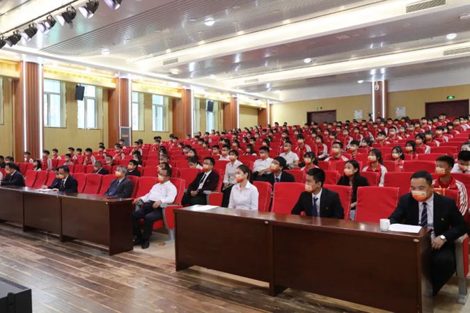 共青团滨州市委书记崔志勇,中共滨城区委副书记郑同忠,滨州市高级技工学校党委书记、校长王树林,党委副书记、副校长孟维赞,党委委员、副校长刘仲凯,共青团滨城区委书记商岩青出席会议,学校中层干部、各教学中心部团总支书记及团员学生代表在现场参加会议,孟维赞主持。全校108个班级、5000名师生在教室内通过网络直播同步收听收看。