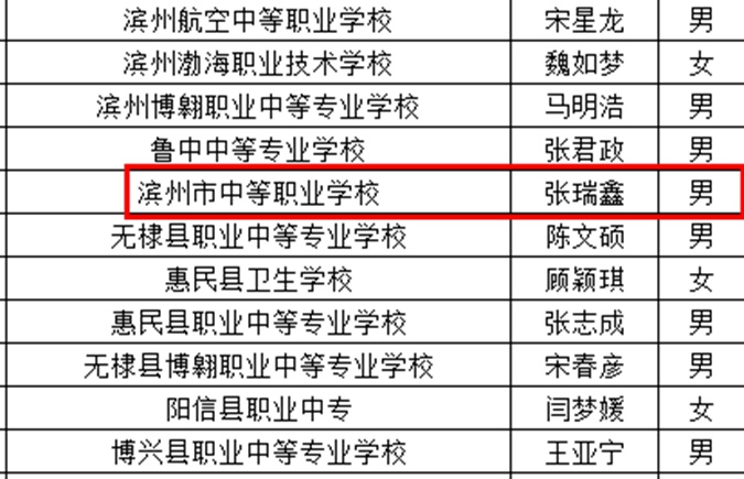 山东省中等职业学校优秀学生