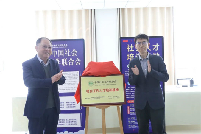 宋万召表示,中国社会工作联合会社会工作人才培训基地落户滨州市高级技工学校,开启了新的“校—地—会”合作形式,内容丰富,前景广阔。希望在“校—地—会”三方的共同努力下,不断深化合作交流,共同把培训基地打造成具有重大影响力的社会工作人才培训基地,为社会工作作出更多的贡献。随后,宋万召与孟维赞共同为“中国社会工作联合会社会工作人才培训基地”揭牌。