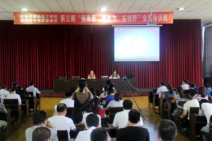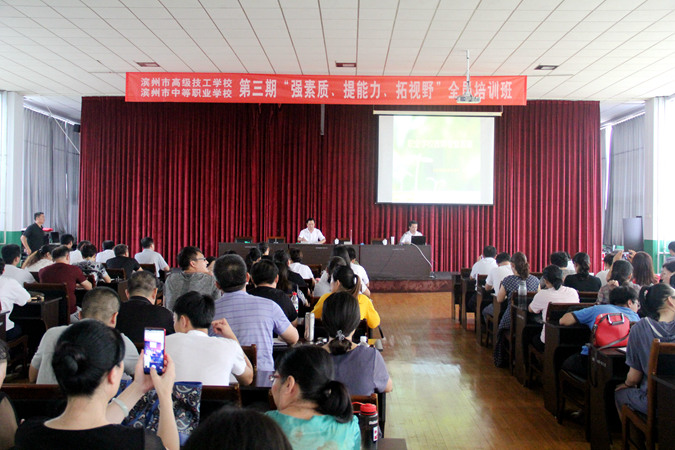 结合学校实际,在2016、2017年两期全员培训基础上,2018年9月13日-14日,滨州市高级技工学校继续举办第三期“强素质、提能力、拓视野”全员培训班。