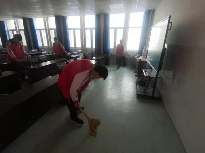 经贸管理教学中心团总支志愿服务队每周自发清扫学校会议室