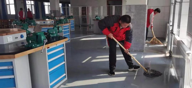 机械工程教学中心团总支志愿服务队清理校园及实训室卫生