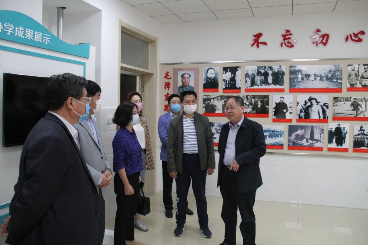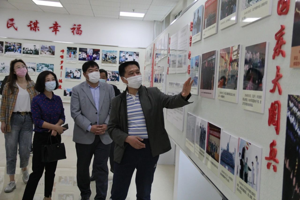刘建兵一行主要考察学校双拥创建工作及红色教育开展情况。首先实地考察了学校东方红广场,瞻仰了毛主席塑像,韶山楼参观了学校红色记忆伟人画像展厅、平语近人展厅、老渤海精神展厅、双拥教育展厅、学生作品展厅等5个红色育人教育基地。