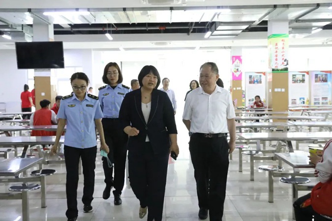 5月29日,滨城区副区长曲婕带队到滨州市高级技工学校督导食品安全工作,学校党委副书记、副校长孟维赞陪同检查。
