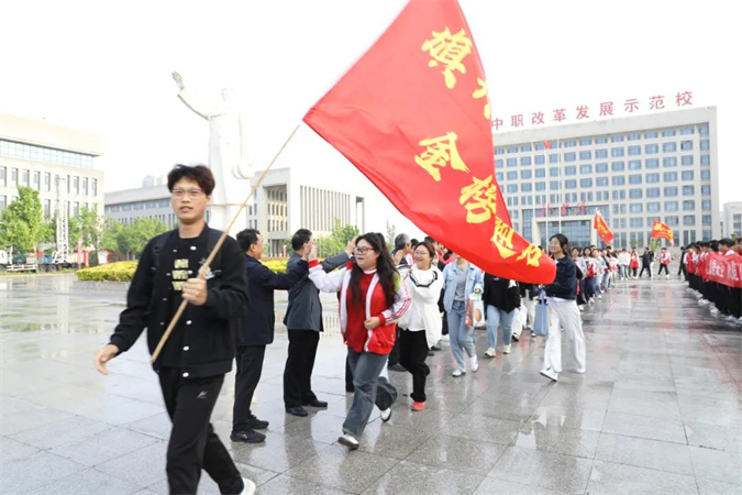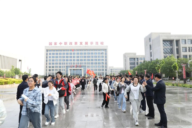 5月10日,滨州市高级技工学校旌旗招展、战鼓催征,校园内洋溢着庄重而热烈的气氛。今天,2025年职教高考的冲锋号正式吹响,学校为出征学子举行了盛大的送考仪式。