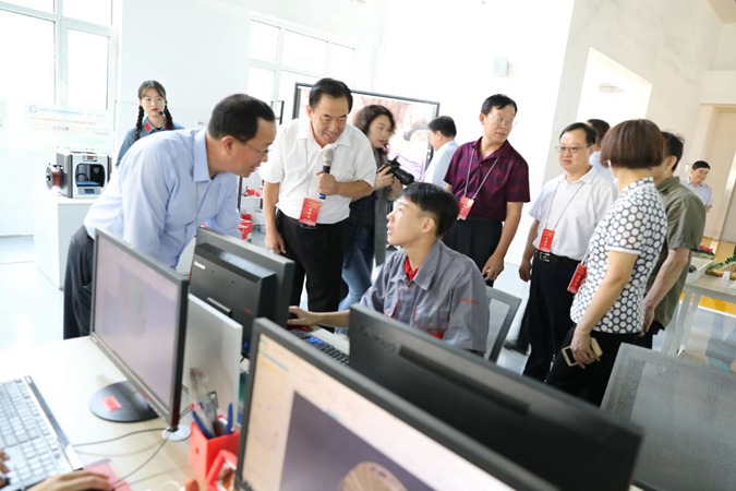 视察组首先参观了学校新建成的实训中心,与正在上课的师生交流,对独特的实训环境和先进的实训设备赞不绝口。