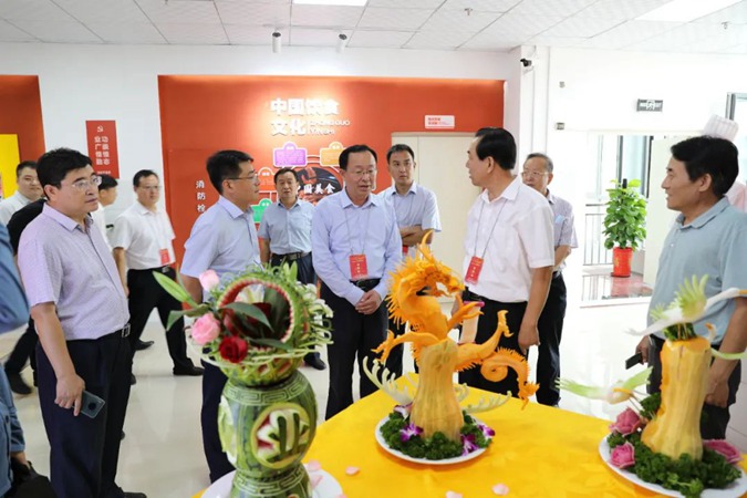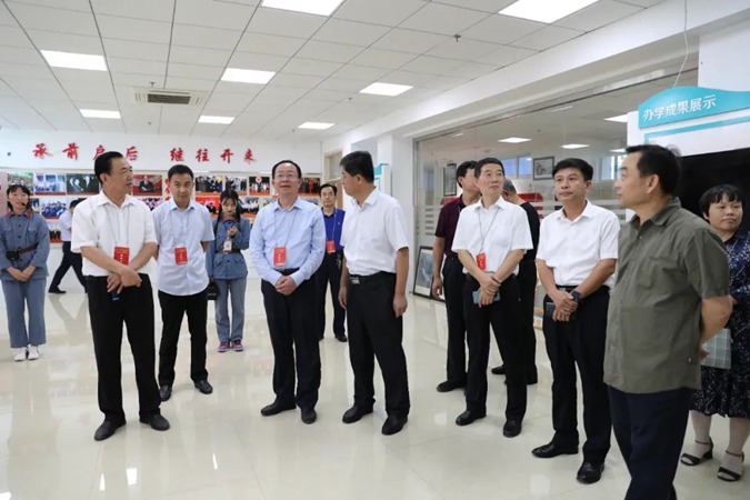 随后,参观了东方红广场、红色育人展厅、红色连廊、智慧教室、产教工坊及新建的学校图书馆、中餐烹饪实训室,并深入学生教室、公寓、餐厅,了解学生学习和生活情况。