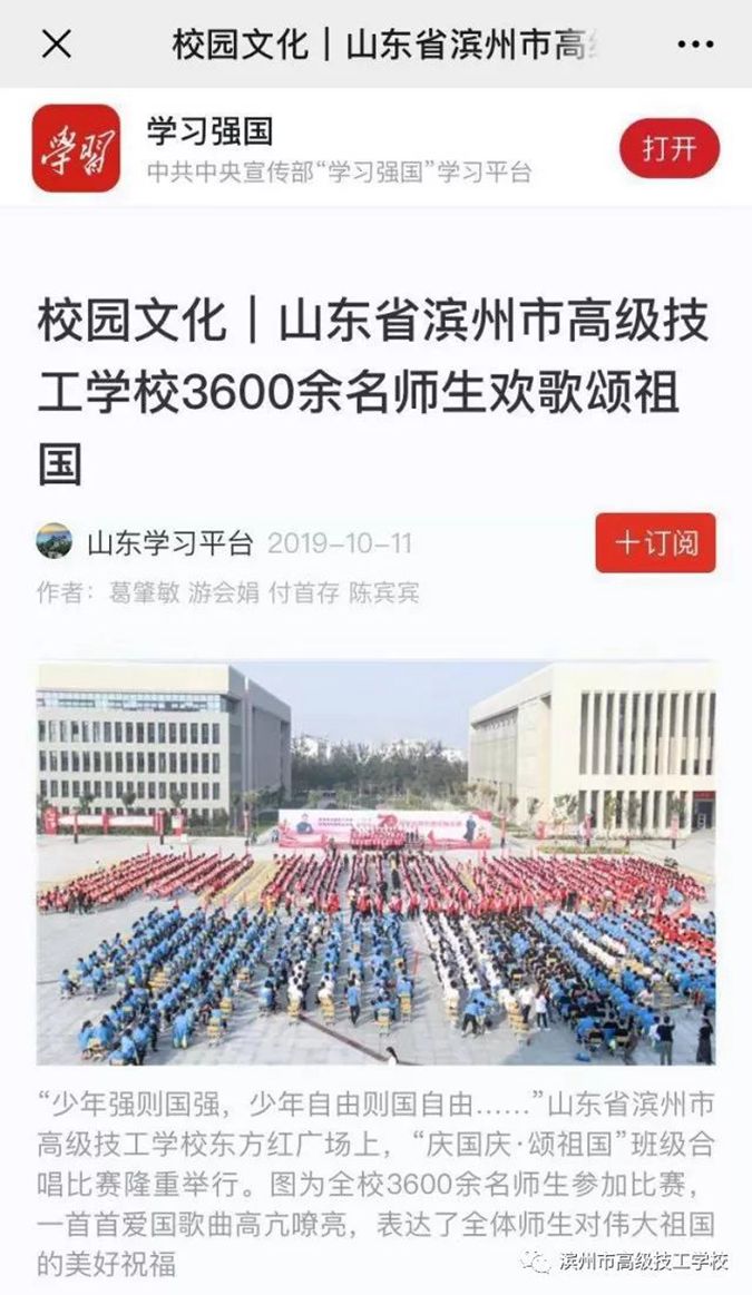 5月18日,《山东省滨州市高级技工学校:传承红色基因 培育时代新人》登上《学习强国》“校园文化”栏目,以视频形式展现学校红色环境、红色活动等。这已是滨州市高级技工学校第30次登上《学习强国》。