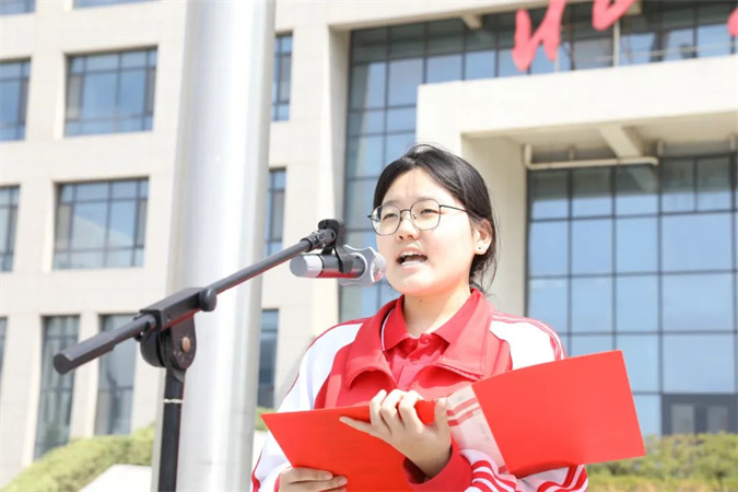 随后,升学部2023级春考电子技术班(毛泽建班)齐依格同学做国旗下演讲。她以真挚的情感、坚定的语气,向全体同学发出 “安全用电,防火减灾,从我做起” 的倡议。结合校园生活实际,她呼吁大家养成规范用电习惯,自觉抵制使用违规电器,坚决杜绝在宿舍、教室等场所的危险用火行为;主动学习并传播防火用电知识,带动身边人共同关注安全;踊跃参与学校组织的各类安全演练,在实践中锤炼应急避险本领。齐依格坚定的话语掷地有声,彰显着学子们守护校园安全的坚定决心。