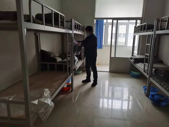 根据3月13日凌晨区疫情防控指挥部《关于市高级技工学校落实疫情防控政策的通知》中“选择独立公寓楼,实行隔离观察”的要求,学校党委组织在校教职员工连夜行动,临时增加床位,把阳信旅居史师生相对封闭在学校“瑞金”楼东附楼。凌晨3:30,学生们搬进临时隔离房间。