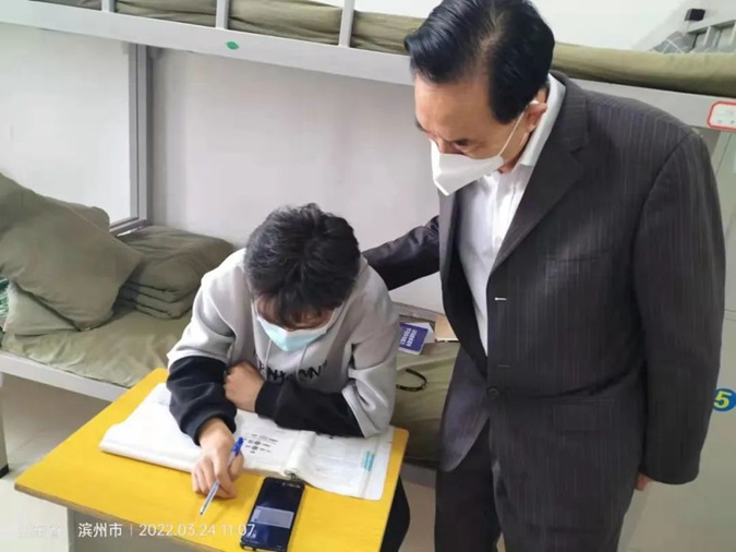 3月17日,学校一名惠民籍教师的父母核酸检测阳性,确定为无症状感染者。中午12:30分,王树林主持召开党委紧急会议(学校第八次疫情防控专题会议),对于与该教师密接和次密接的21名教职员工和40名学生,在学校“古田”楼进行单人单间封闭健康检测。
