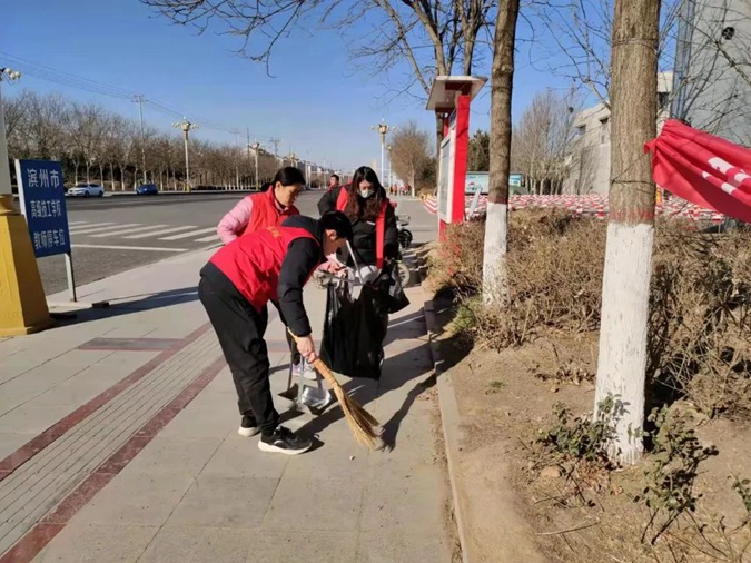 滨州市高级技工学校机关党委组织部分党员走进文苑社区开展“弘扬雷锋精神 传承志愿服务”学雷锋共建活动。