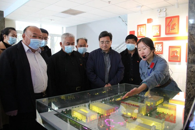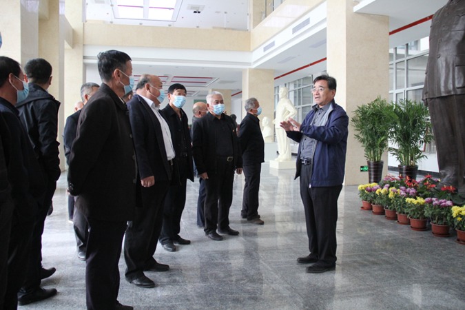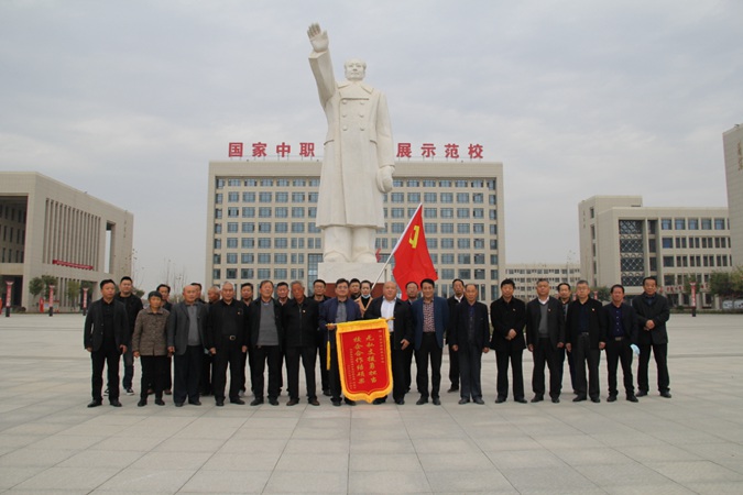 张强一行参观了学校渤海革命老区红色教育基地,在东方红广场毛主席雕像前合影留念,并将写有“无私支援勇担当 校企合作结硕果”的锦旗赠予学校。