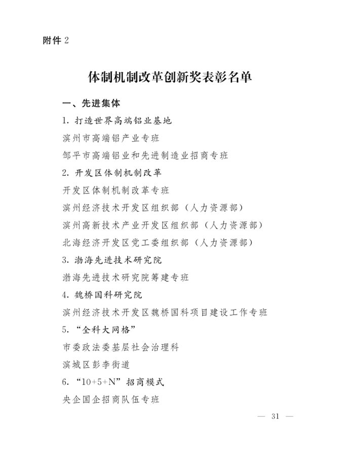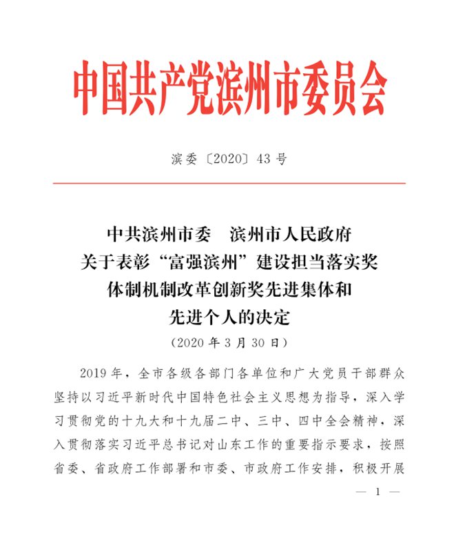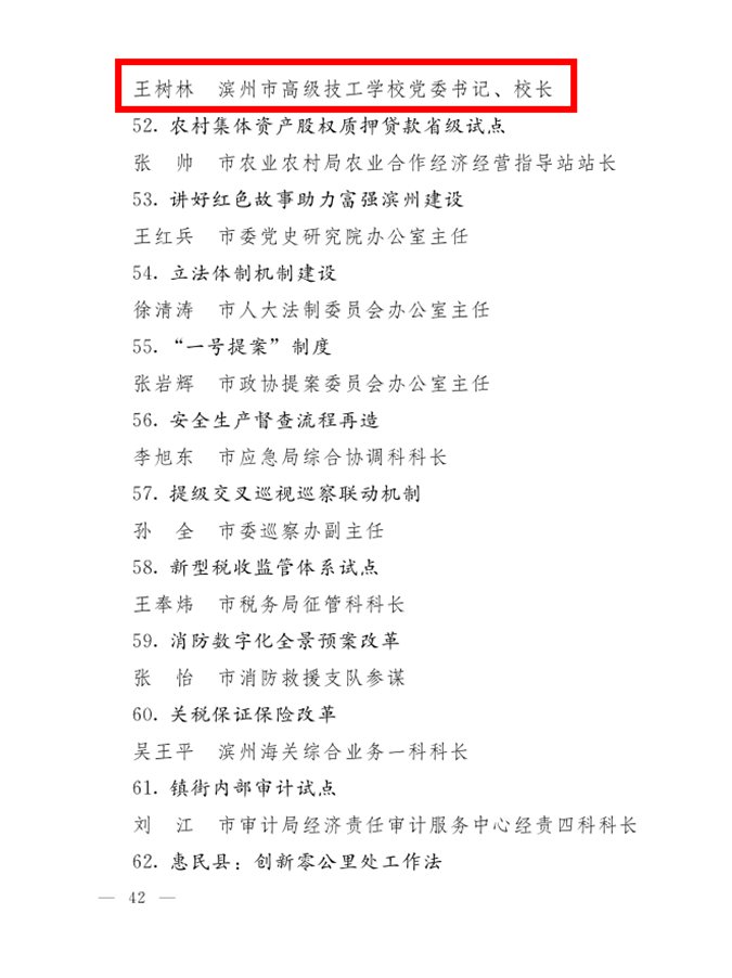 王树林同志获滨州市体制机制改革创新奖先进个人