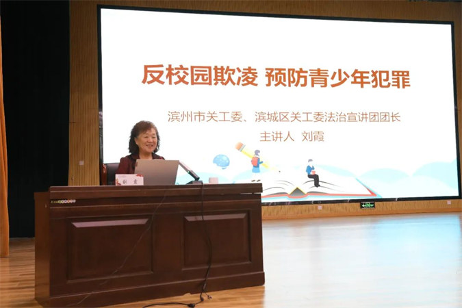区关工委法治教育指导部部长刘霞进行了“预防校园欺凌”青少年法治教育专题宣讲。
