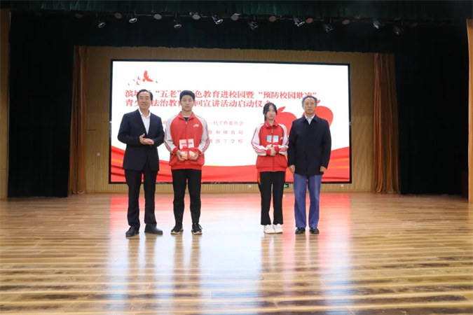 4月16日,滨城区“五老”红色教育进校园暨“预防校园欺凌”青少年法治教育巡回宣讲活动启动仪式在滨州市高级技工学校举行。